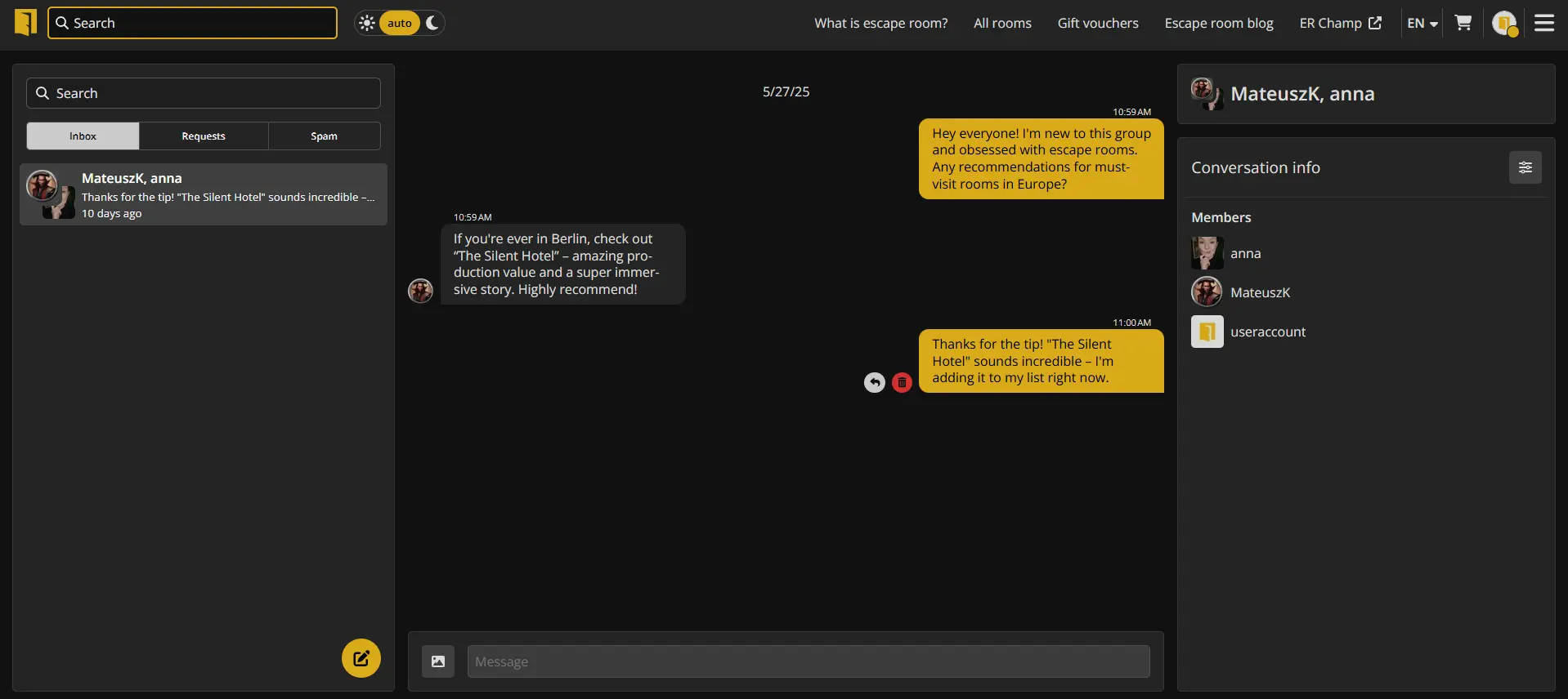 Important: if you reply to a message in "Invitations" or "Spam," it will automatically be moved to "Conversations." However, this does not mean: