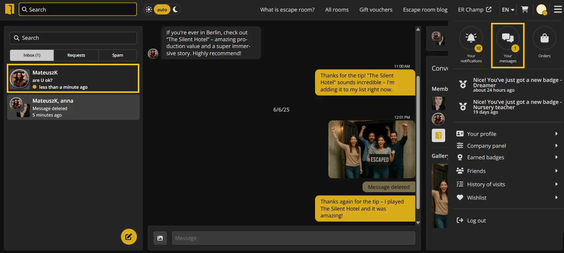 New messages, invitations and spam are clearly marked - both in the conversations list and in the main menu.
