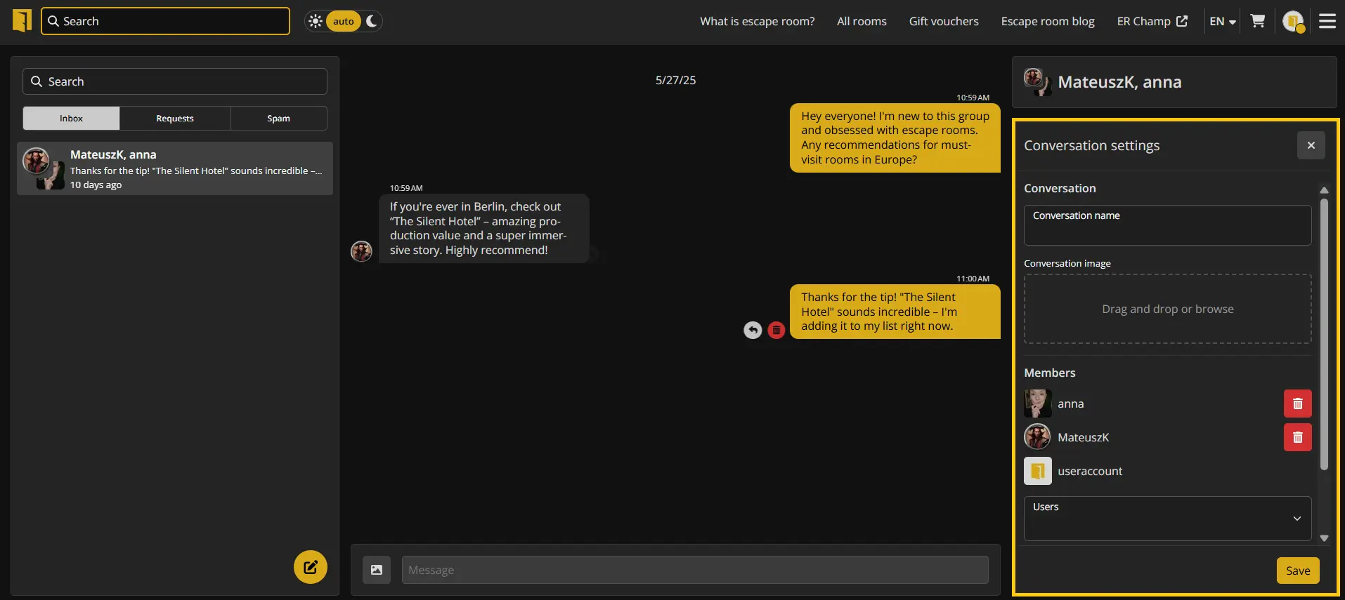 • can move the conversation to spam manually - without affecting the other participants.