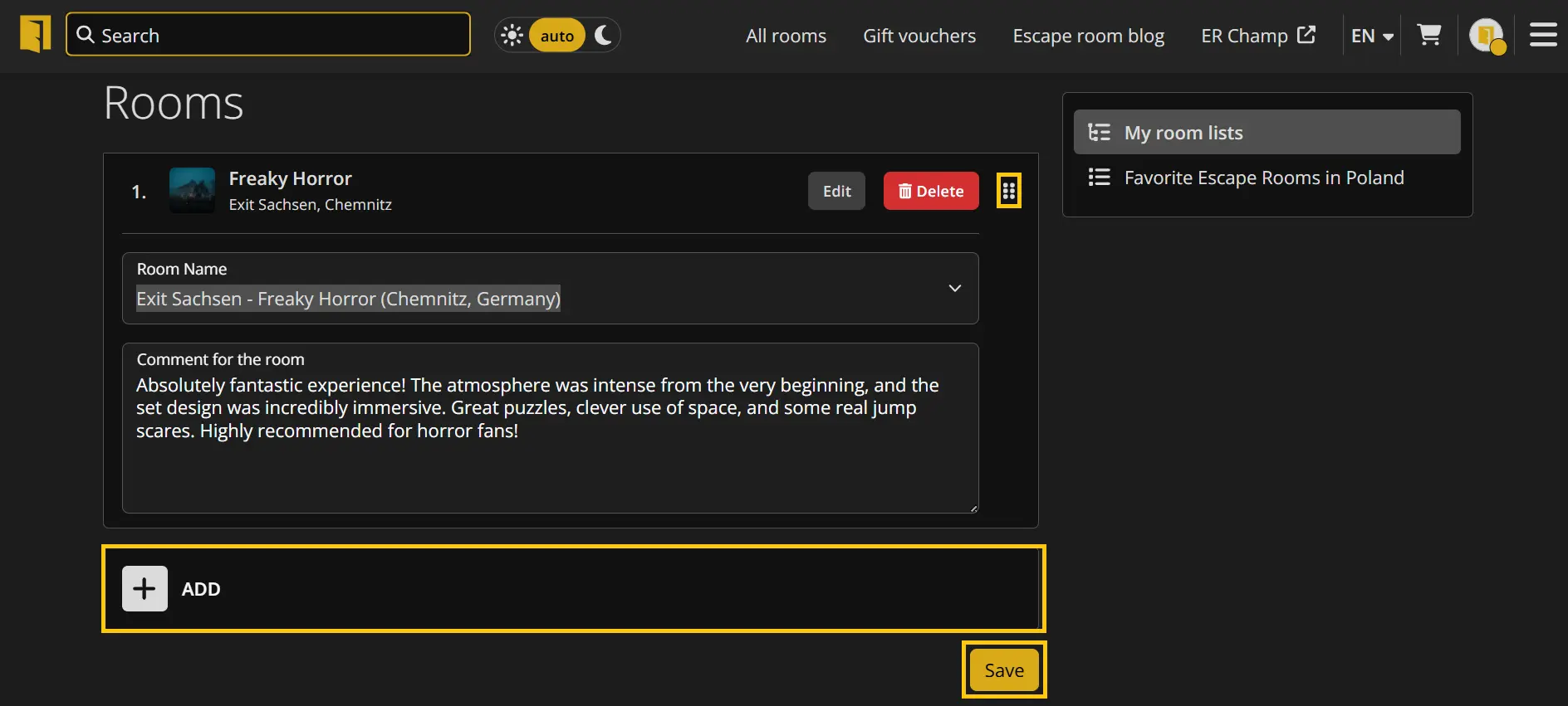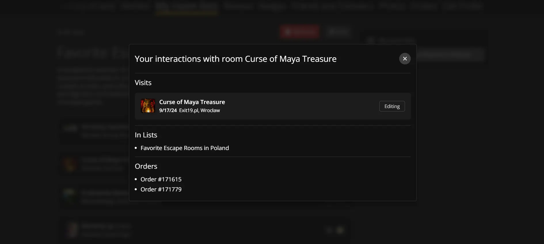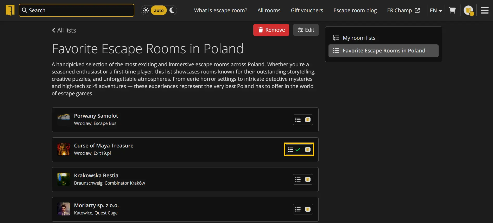 The "My Room Lists" tab allows you to create your own listings of escape rooms available on Lockme. Here you can group rooms according to any key - for example, favorites, thematic (horror, sci-fi), location (e.g. Wroclaw, Tricity), or rankings like "Top 10".
