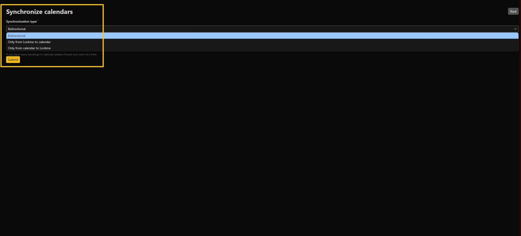 - "Only from calendar to Lockme" mode - deleting a booking in Lockme does not delete the event in the calendar, BUT deleting an event in the calendar deletes the booking from Lockme,