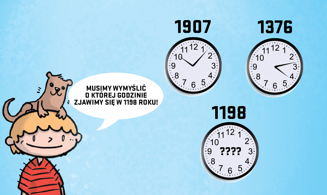 W tej zagadce kluczowe było zauważenie zależności między parami liczb w rocznikach a wskazówkami. Analizując pierwszy przykład, czyli rok 1907, zegar wskazuje nam godzinę 10:07. To dlatego, że 1+9=10, a 0+7=7. Analogiczna sytuacja jest z drugim przykładem pomocniczym: 1+3=4, a 7+6=13, wobec czego ze wskazówek odczytujemy godzinę 4:13. Dzięki analizie ostatniego przykładu możemy uzyskać prawidłowy wynik.