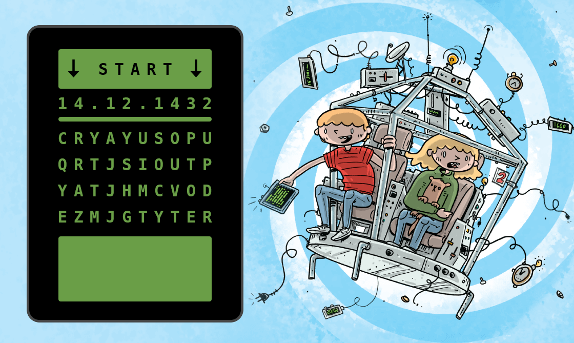 To było zadanie na spostrzegawczość: na grafice znalazły się bowiem fragmenty okładki książki “Dziennik: Zagadkowa podróż przez czas”. Wystarczyło odnaleźć elementy z grafiki na obrazku i złożyć z nich odpowiedź.