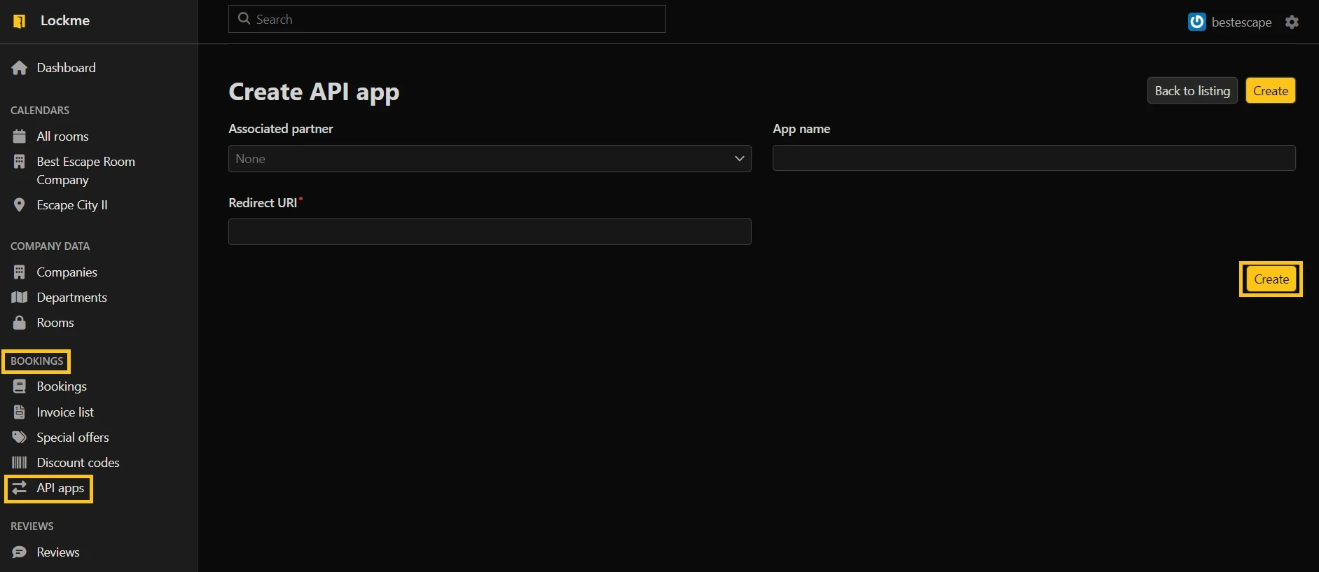 - Wejdź w zakładkę "Rezerwacje" > "Aplikacje API".