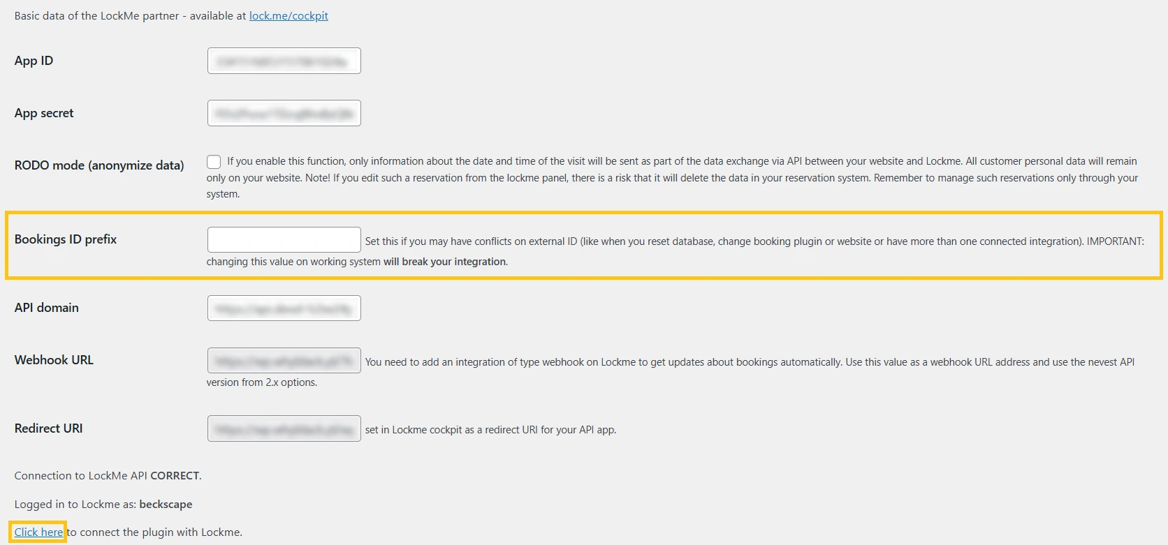 - Jeżeli już masz rezerwacje na swojej stronie, możesz je przesłać do Lock.me za pomocą przycisku "Kliknij tutaj" w ustawieniach wybranej wtyczki rezerwacyjnej.