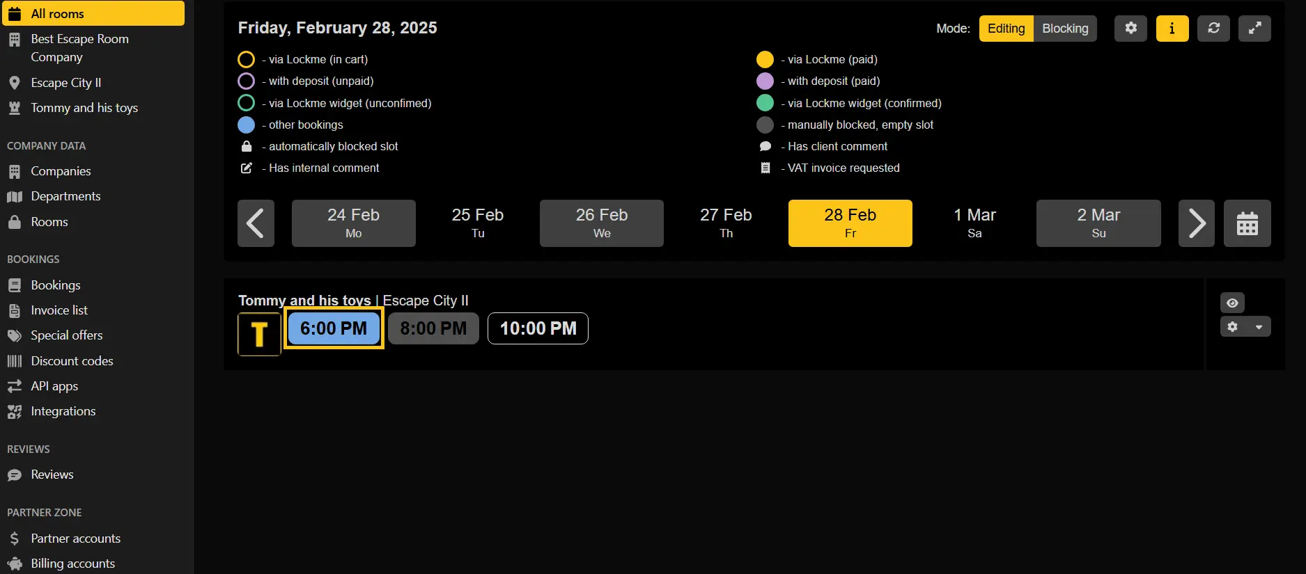 The system allows you not only to add reservations, but also to block time slots, which prevents customers from booking them. To block a slot, click the padlock icon in the reservation form.